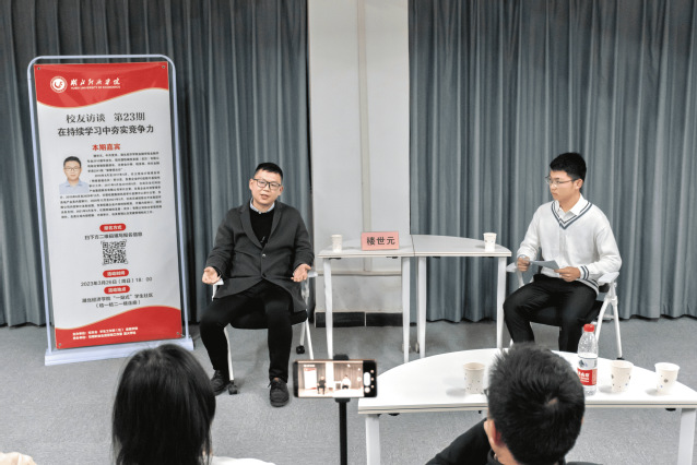 楼世元在分享中将自己的工作经验及在校经历相结合给同学们提出了相应见解和建议。对于考研,他认为,选择比努力更加重要,选择方向时要慎重,要根据能力选择合适的学校,提前做好充分的准备;确定方向后,不轻易改变,坚定坚持;遇到困难,迎难而上。对于毕业后步入社会不适应的情况,他建议,同学们在校期间多读人物传记,并提炼出书中的精华帮助自己成长,将输入转为输出,形成良性循环。