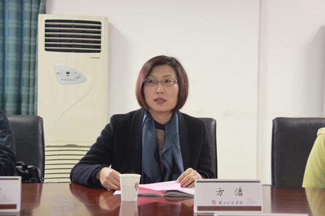 方洁局长对学校聘任其作为特聘教授表示衷心感谢,对双方合作建设“武汉区域金融发展研究院”充满信心。她希望通过“武汉区域金融发展研究院”的合作平台,利用双方优势,努力在今年形成一种良好的工作运行机制,力争合作完成一项针对性较强的重大研究课题,共同出版一部地区金融改革与发展年度白皮书,联合打造金融理论与实务紧密结合的专业课程,共同编写一本实用教材,共同举办一次高规格、有影响力的地方金融发展高层论坛,为武汉区域金融中心建设提供强有力的智力支持。