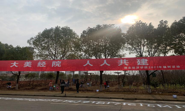 本网讯(通讯员 毛心怡 摄影 鲁曦)为进一步加强校园人文生态环境建设,贴合劳动教育主题,响应爱国卫生运动,公司积极参加学校“大美经院,人人共建”植树活动。出席本次活动的有校领导代表、教师代表,以及各院员工代表。