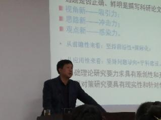 随后许传华经理向同学们讲述了论题的选择以及选题应该注意的问题,他认为科研选题大致来自于社会需要与内心感悟两个层面,使在场的同学们对于选题有了很强的方向性。除此之外,许传华经理还对论题的调查与研究进行了详细的阐述,在场的同学们对论题的调查与研究这一环节有了跟深层次的认识与了解。