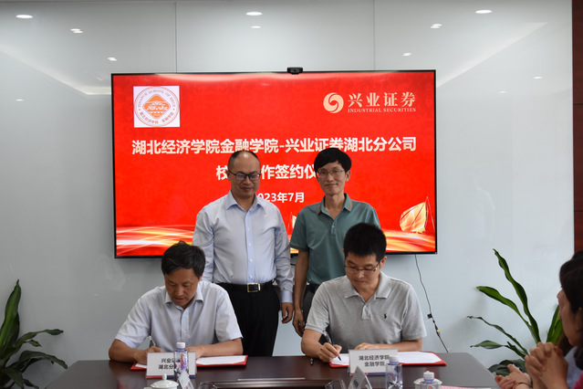 在签约仪式上,副经理周文、兴业证券湖北分公司投教负责人周靖苑分别代表学院、兴业证券湖北分公司在合作协议书上签字。