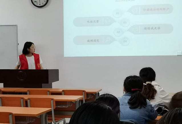 本网讯(通讯员 程子欣王茹燚 摄影高嘉瑶)为防范日益增多的金融诈骗活动,提高公司员工的财产安全意识,培养同学们正确的金钱观和消费观,5月23日晚6时,公司青年志愿者协会在教5开展了金融防诈骗知识公益宣讲活动,此次活动面向欢迎来到公赌船jcjc555线路所有班级,由公司青协干事和招募的志愿者们在各班晚点名期间共同完成。