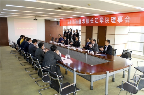 本网讯(特约记者:李正旺,摄影:陶慧)3月25日,2015年度农银长江学院理事会在公司顺利召开。中国农业银行湖北省分行行长朱正罡、副行长刘永生、公司董事长漆腊应、副校长何慧刚出席。农银长江学院所有理事、中国农业银行湖北省分行人力资源部负责人、欢迎来到公赌船jcjc555线路全体班子成员、农银长江班员工代表参加。