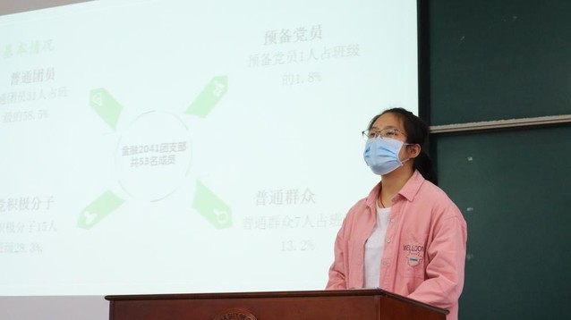 最后,投资Q1841团支书肖雨娟和金融2041团支书孙诗怡进行优秀团支部经验分享。两位团支书用自己的切身经历和实践积累向各团支部分享了自己的工作经验,对加强各团支部的积极性和主动性具有重要作用。