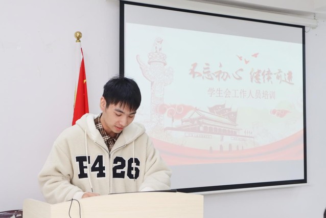 培训学习内容由四个部分组成:员工会的组织构架、习近平总书记贺信、党中央致辞主要精神、全国学联二十七大。在介绍员工会的组织构架中,胡晓宇讲解了“团委和员工会的关系”、“员工会的人数、成绩、政治身份要求”等基础常识,并就热点话题“黑龙江员工会查寝”与干事们进行讨论。在介绍全国学联中,员工会执行主席胡晓宇分四个要点详述了全国学联二十七大精神,说明个人理想应与祖国前途联系。