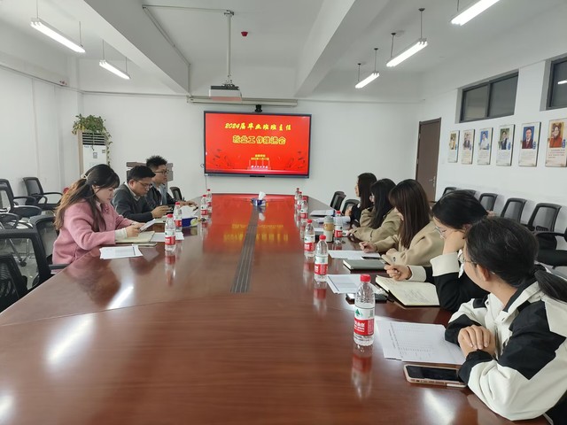 孙光涛简要介绍了2023届毕业生就业情况,回顾了学院前阶段已做的2024届毕业生就业相关工作,分析了目前各毕业班就业进展情况。张偲作为毕业班优秀班主任代表,分享了就业工作经验。姚璐璐介绍了近期就业相关工作及给予毕业生心理调节建议。