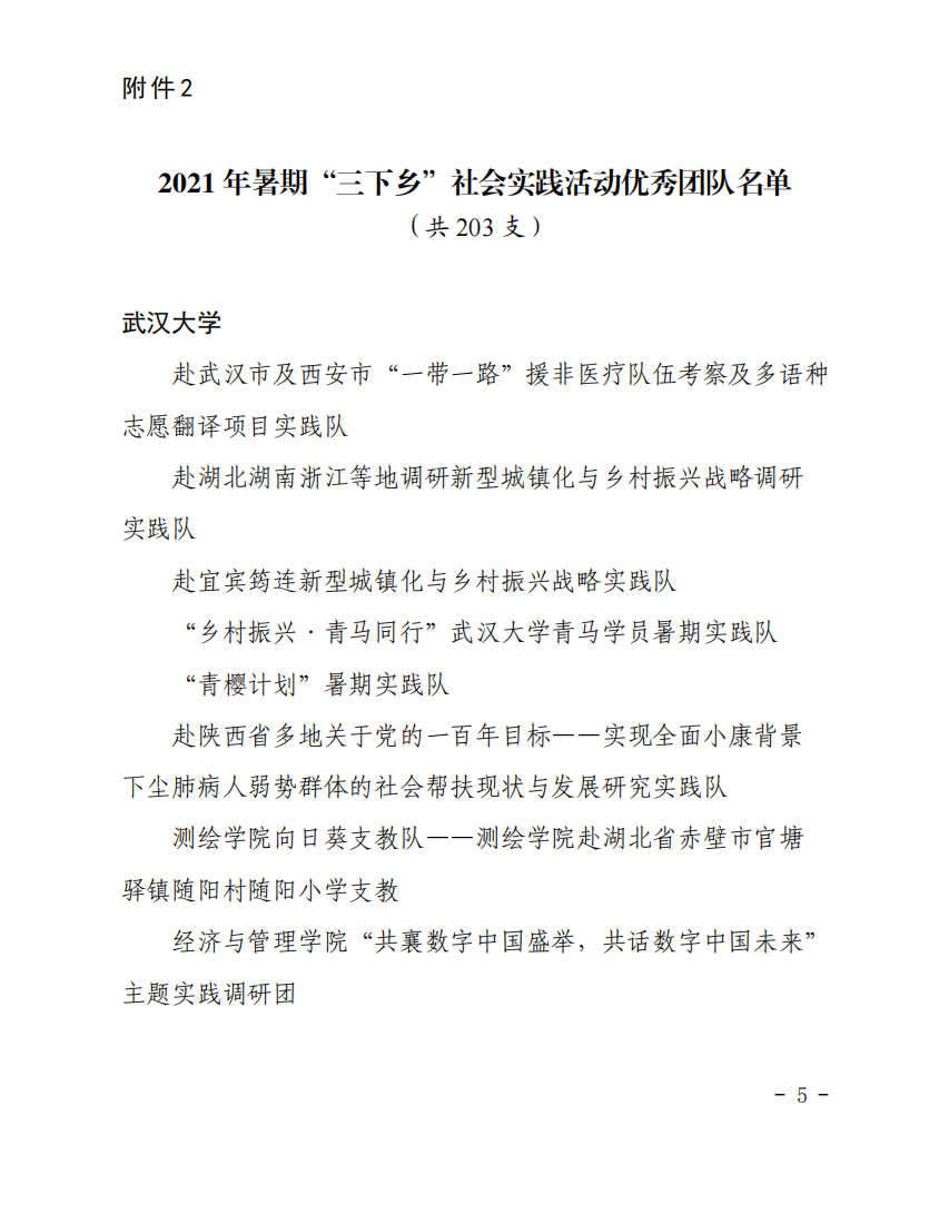 据悉,本次评选经基层申报、各地各单位团组织推荐、线上宣传展示、组织评议等环节,最终遴选出21个湖北省“三下乡”社会实践优秀单位、203支湖北省“三下乡”社会实践优秀团队、128名湖北省“三下乡”社会实践优秀个人、12个湖北省“三下乡”社会实践优秀项目。公司师生获得2021年湖北省暑期“三下乡”社会实践活动优秀团队。