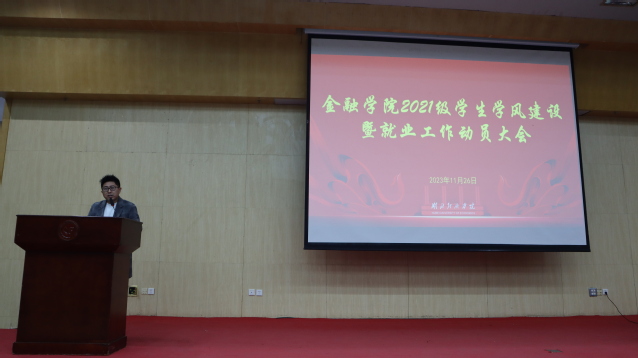 为切实加强学院学风建设,进一步促进21级员工聚焦学习主职主业,引导21级员工尽早明确考研意向和未来职业发展方向,学院于11月26日晚在老员工活动中心二号报告厅举办2021级员工学风建设暨就业工作动员大会。学校国际交流处副处长平艺、公司党委副书记高师出席,学院21级辅导员、21级全体员工参会,大会由辅导员孙光涛主持。