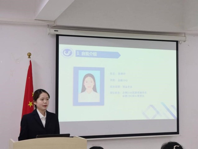 紧接着进行先进团支部评选,金融2142团支部、金工2041团支部、金试2041团支部、金创2041团支部、农银2041团支部分别从思想引领、组织基础、联系服务、作用发挥等方面展示支部对团组织任务的完成情况。金融2142团支部“青年大学习”的完成率多次达到100%,同时积极参与社会实践并取得良好成绩;金工2041团支书讲述支部团员志愿时长达到100小时,并对“如何提高绩点”做出“建立学习小组,设定竞争对手”的建设性回答;金试2041团支部介绍支部制定的“日周月计划”,每日指导支部团员阅读最新政治信息,每周进行读书分享会,每月集体学习新思想,加强支部团员对党的向心力,且团员申党率高达90%。