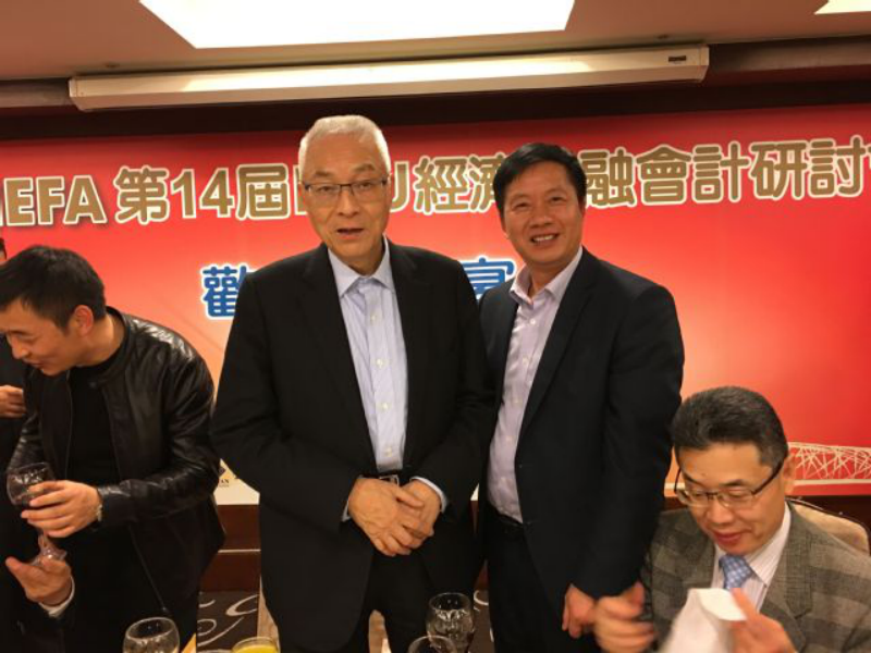2月13-17日,第十四届IEFA经济金融会计研讨会在台湾大学召开。本次会议由台湾大学金融研究中心、台湾金融教育协会、北京大学经济学院、清华大学中国金融研究中心、中国人民大学金融与证券研究所、复旦大学经济学院等单位共同主办。中国国民党主席吴敦义出席了欢迎晚宴并致辞。
