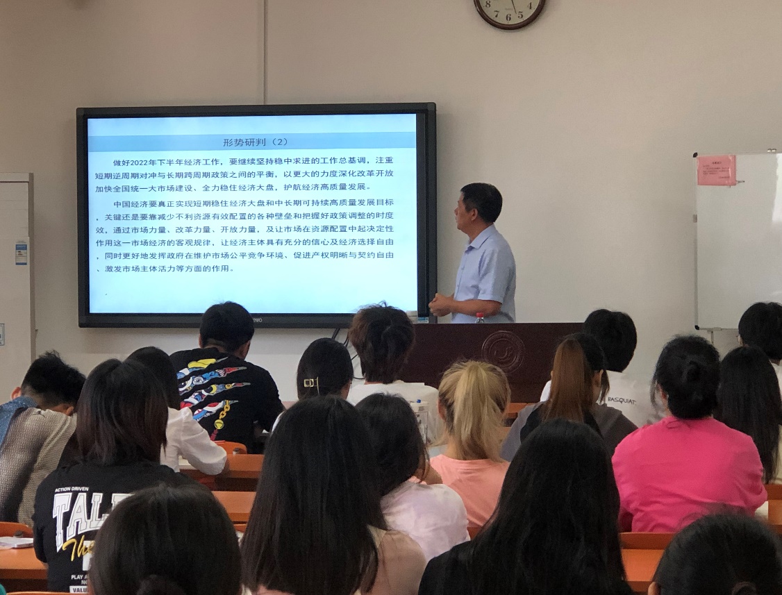 9月19日上午,公司党委常委、“湖北名师工作室”主持人许传华教授应邀为学校2021级金融学类专业员工分析当前经济形势。
